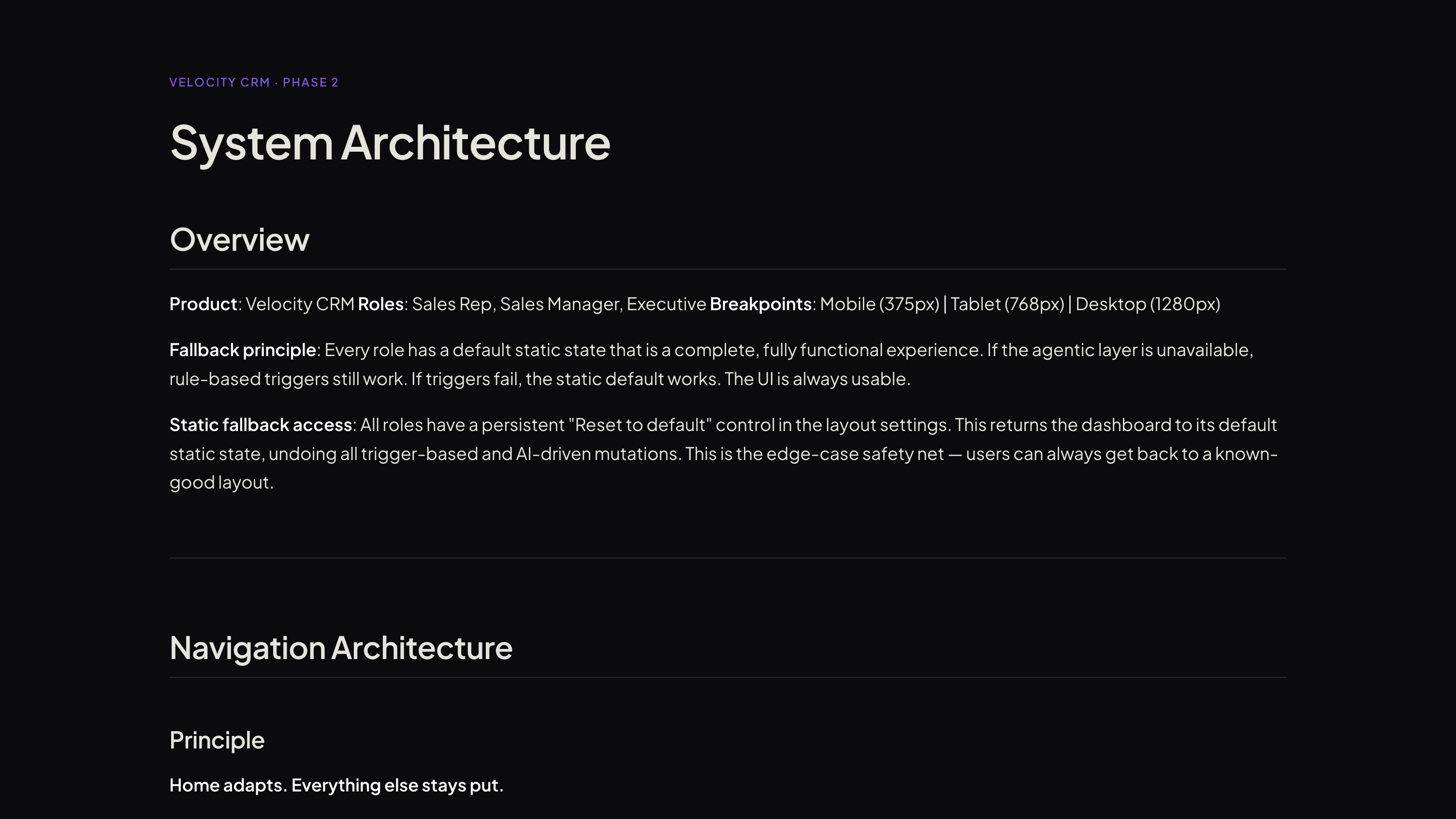 AI used the brief to draft the system architecture: module set, navigation rules, information hierarchy, and how the UI responds to different contexts.