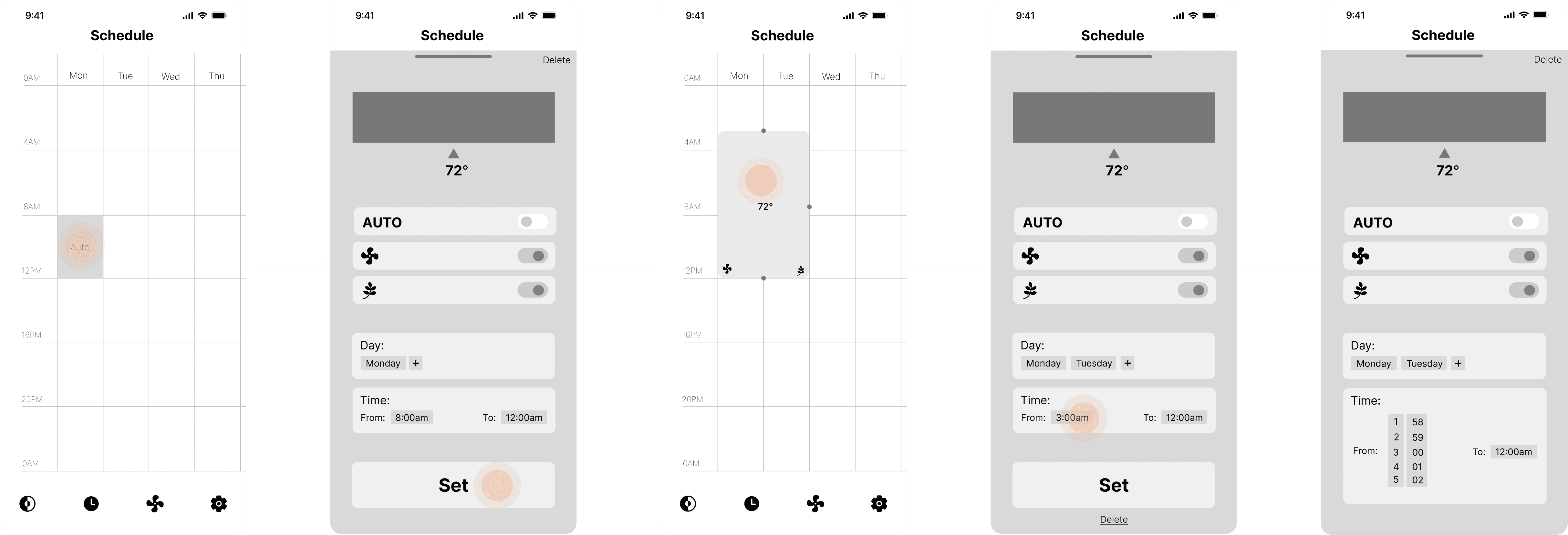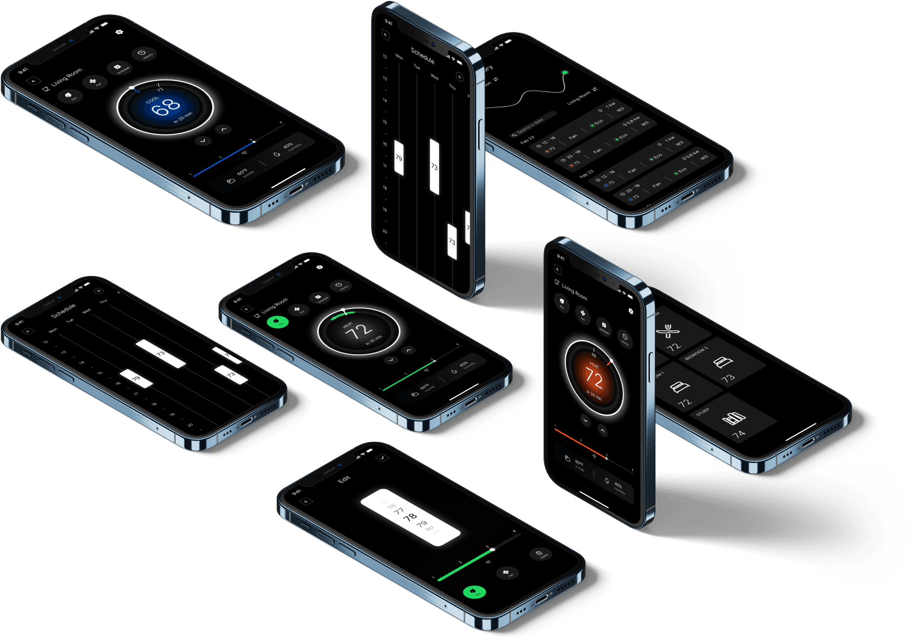 For the mobile experience, I ensured that the design offered more advanced capabilities than the thermostat itself. Leveraging the convenience of mobile interactions, we introduced personalized features such as room-specific controls and batch scheduling.